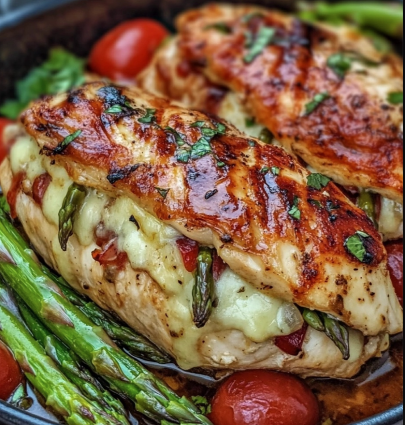 Instead of mozzarella cheese, use goat cheese to stuff the chicken breasts. The creamy and tangy flavor of goat cheese pairs wonderfully with the asparagus.