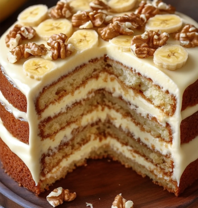 Indulge your taste buds with this heavenly Banana Walnut Cream Cake. The tender banana-infused cake, studded with crunchy walnuts and topped with a creamy layer of cream cheese frosting, is sure to be a crowd-pleaser. Whether you’re celebrating a special occasion or simply craving a delicious dessert, this recipe will not disappoint. Enjoy!