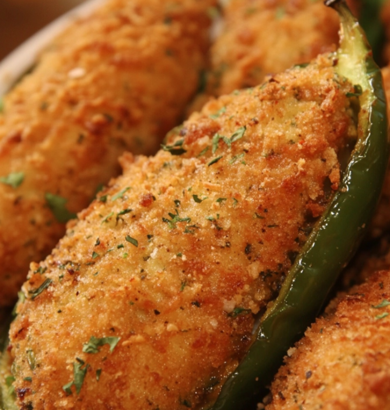 In a mixing bowl, combine the cream cheese, chopped jalapeños, cheddar cheese, Parmesan cheese, bread crumbs, garlic powder, salt, and pepper. Stir until well combined.