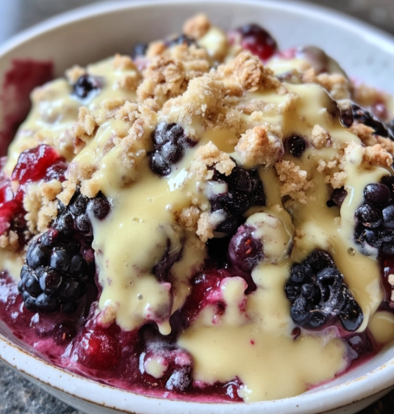 In conclusion, this Mixed Berry Crumble with White Chocolate Crème Anglaise is a delightful dessert that combines the sweetness of mixed berries with a crunchy crumble topping and a luscious white chocolate crème anglaise. Whether you’re hosting a gathering or simply satisfying your sweet tooth, this recipe is sure to impress. Enjoy!