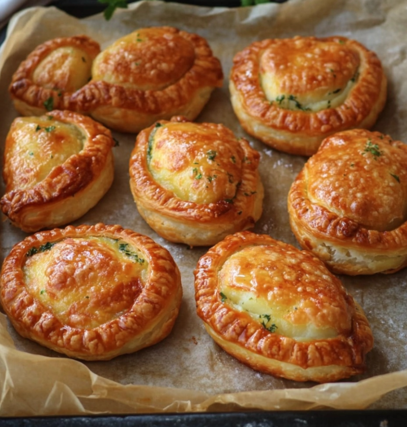 8. Preheat the oven to 350°F (180°C). Place the filled pastries on a baking sheet lined with parchment paper.