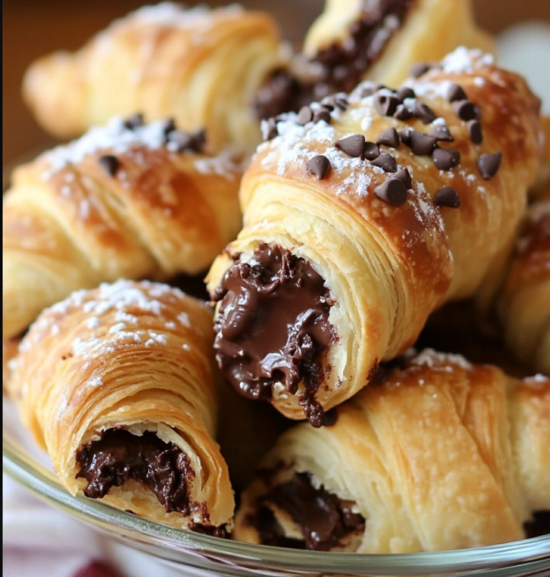 These crescents are best enjoyed warm, straight from the oven. The melted chocolate inside will be irresistibly gooey!